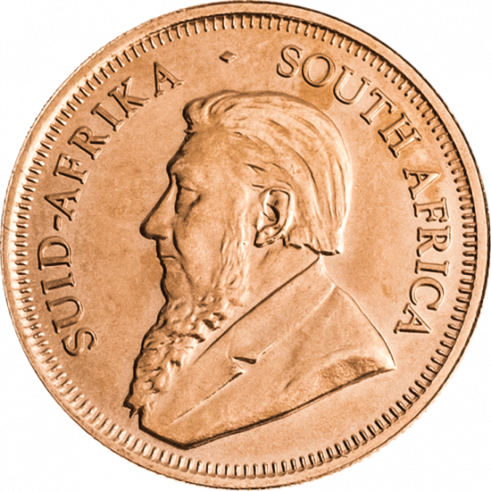 Der Krügerrand wird seit 1967 herausgegeben, benannt nach dem Motiv "Bildnis Präsident Kruger". Bei den Gold-Anlagemünzen ungewöhnlich ist hier die Beimengung von 9% Kupfer, wodurch die Münze ihren charakteristischen, rötlichen Farbton hat. Motiv der Rückseite ist der südafrikanische Springbock.